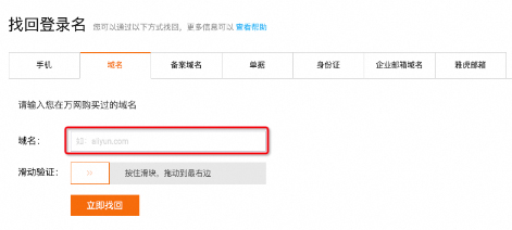 以域名方式为例,输入对应的域名,验证成功后点击立即找回。